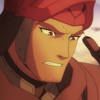 The image features an animated character who appears to be a knight or warrior. He is depicted with a muscular build, wearing armor and holding what looks like a sword in one hand while his other hand is making a gesture as if he is casting a spell or performing a ritualistic action. The art style suggests that this character could be from an animated series or film set in a fantasy setting.