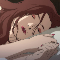 a soft lighting that suggests the scene is taking place at night. The artwork is detailed with shading and highlights that give depth and realism to the character's features.