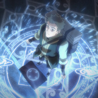 an animated show or film. It features a character who looks like they are in the middle of casting a spell or performing some sort of