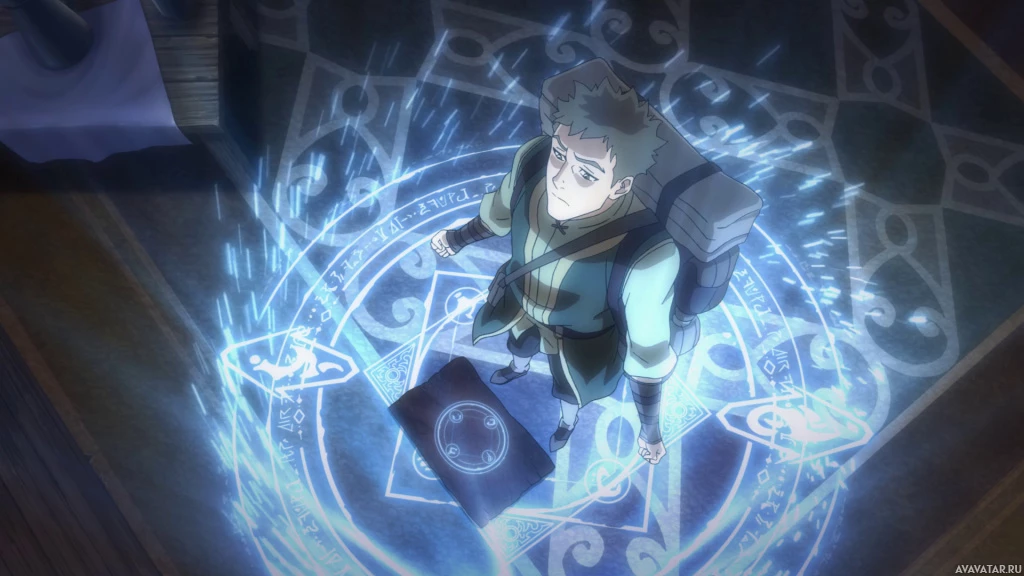 intricate symbol drawn on the floor beneath them, which suggests they are using this image for their spell. The style of animation is quite dynamic and detailed, suggesting it might be from an action-adventure or