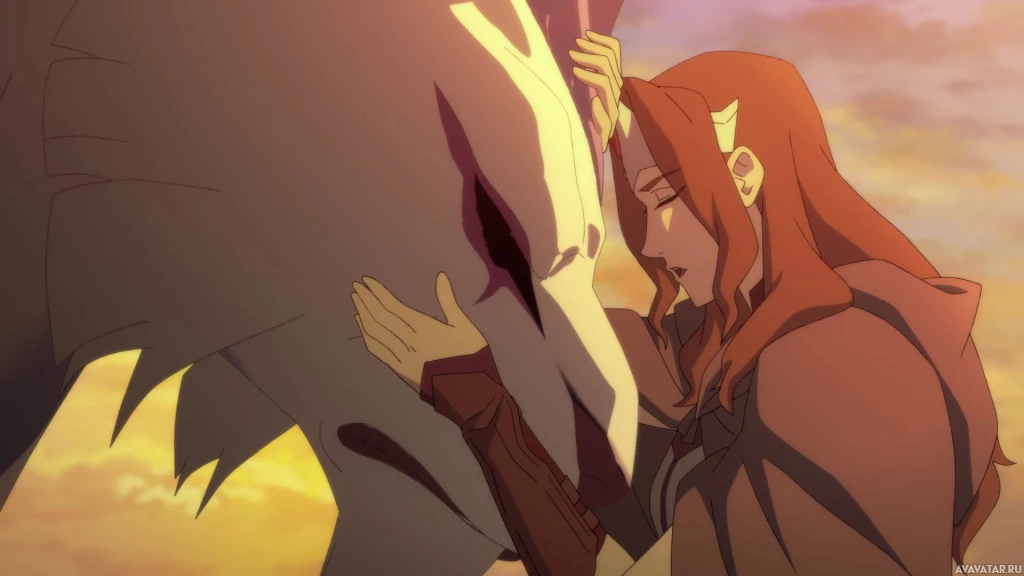 a moment of affection between them. The background suggests it could be dawn or dusk, given