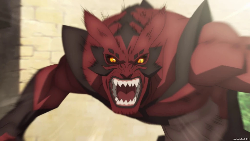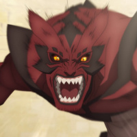 creature with horns and fangs. This creature is known as Minotaurus in the series, and it appears to be shouting or expressing some sort of