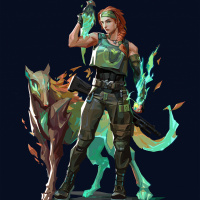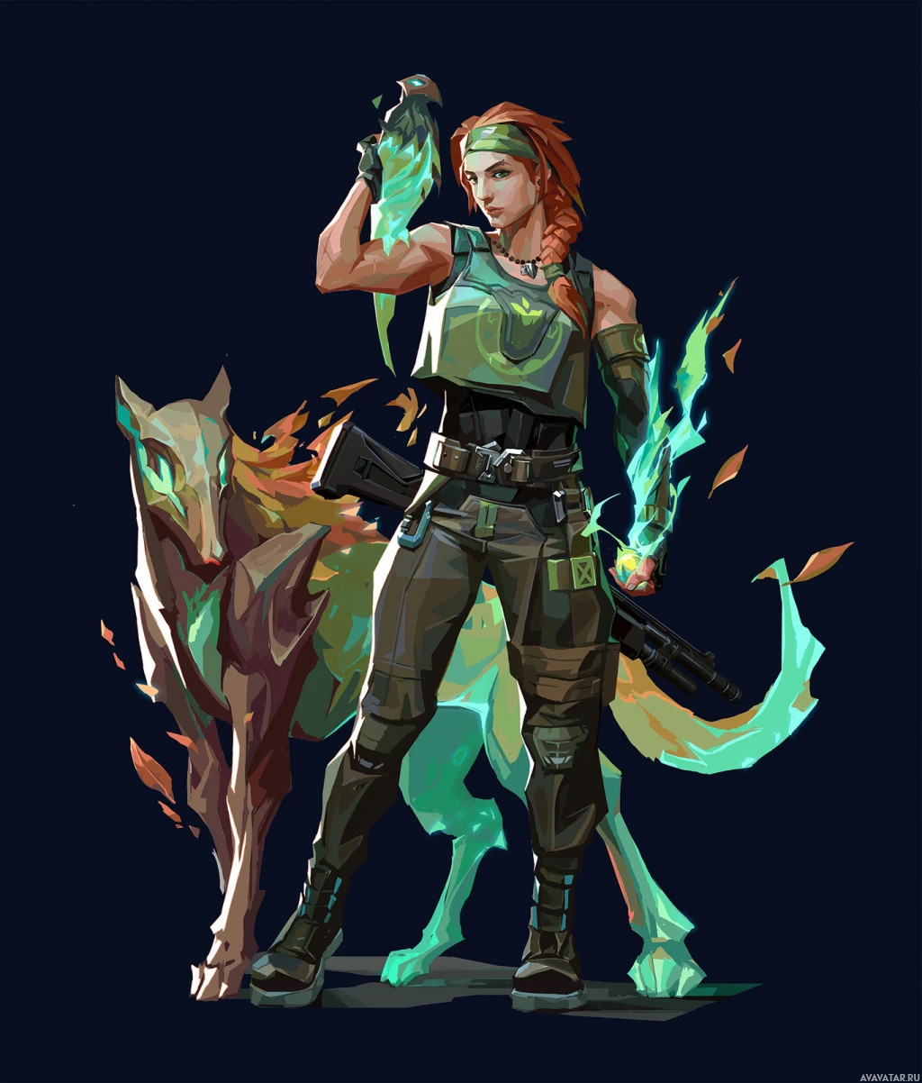 glow effect around it. Next to her stands a creature that resembles a wolf, also depicted in an illustrated style with