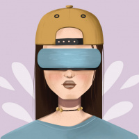 abstract art. Her expression seems neutral to slightly contemplative. The overall style suggests this could be an avatar for a social