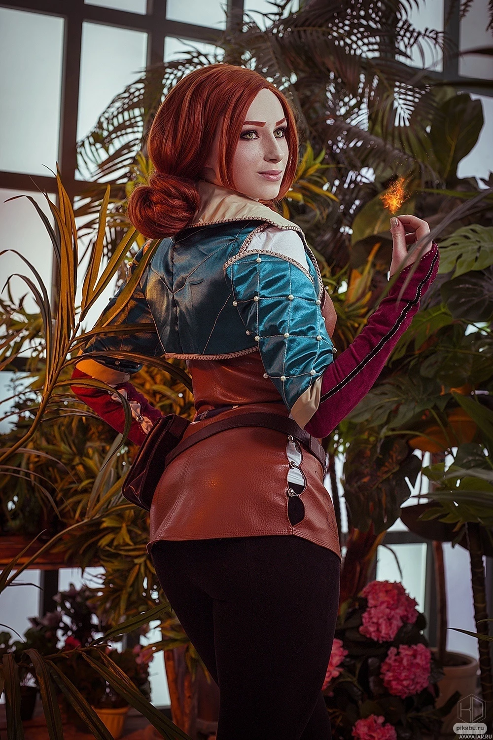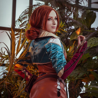 Triss Merigold from the game "The Witcher". The character is depicted in her signature outfit, which includes a brown