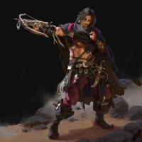 moody atmosphere, which is consistent with the game's aesthetic. The character is wearing armor, a cape, and has a bow and quiver slung over his shoulder.