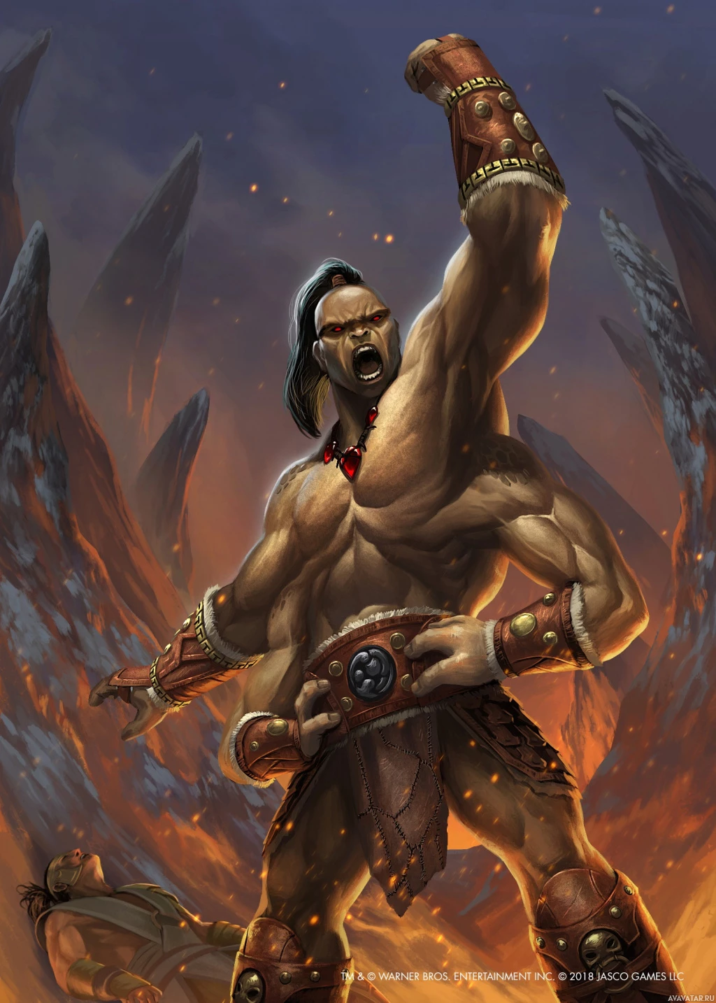 facial expression and a physique that suggests great strength. He's wearing what appears to be tribal or ancient armor, with