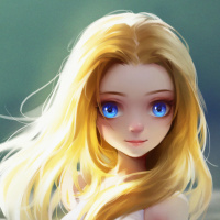 The image shows an animated or illustrated character, a young woman with blonde hair. She has blue eyes and is wearing what appears to be a light-colored top. She is standing by the water's edge, giving off a serene and contemplative vibe.