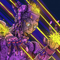 blue tones, with accents of yellow and white that may represent light sources or energy effects. There's