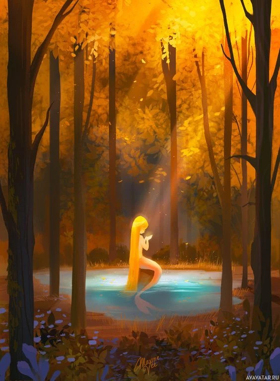 The image depicts a fantasy-themed scene featuring an animated mermaid sitting on the edge of