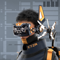 science fiction, where such technology could be a common sight in advanced societies or scenarios within a sci-fi narrative. The helmet and the VR headset indicate an emphasis on