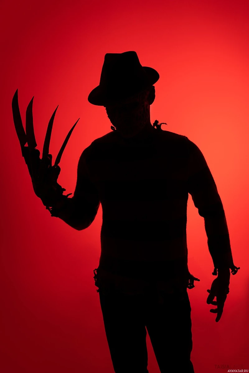 Freddy Krueger from the "Nightmare on Elm Street" film series, known for his signature clawed glove and menacing presence.