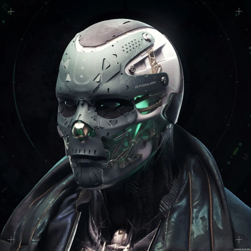 blue eyes, suggesting advanced technology or cybernetic enhancement. The design is characteristic of