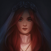 a female character with red hair, wearing what appears to be wedding attire. The character is looking directly at the viewer with