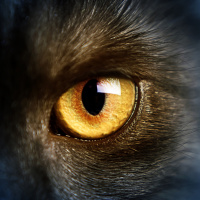 The image shows a close-up of a cat's face, focusing on its right eye. It appears to be a digital or edited photo with an emphasis on the feline's gaze. The cat has a furry coat and what looks like a somewhat intense expression in its eyes.