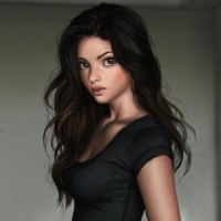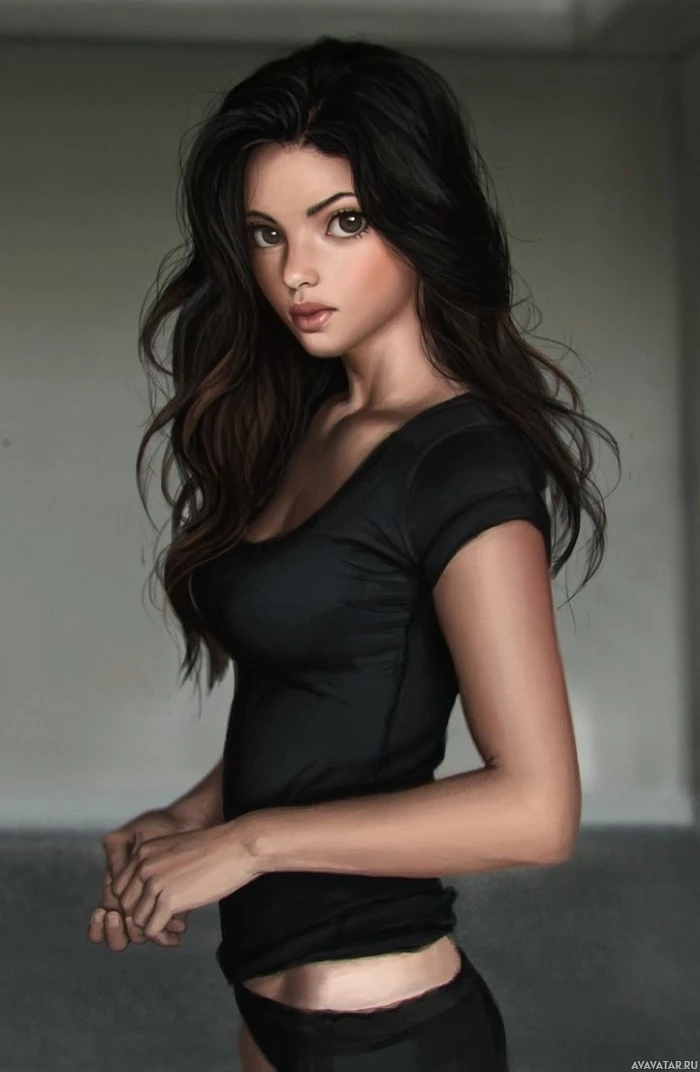 a sleeveless top with her left hand resting on her hip. The lighting in the photo gives it a soft,