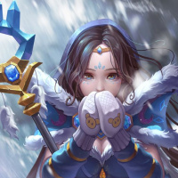 the Crystal Maiden from the game Dota 2. She is depicted in an animated style with stylized features, wearing a costume that includes