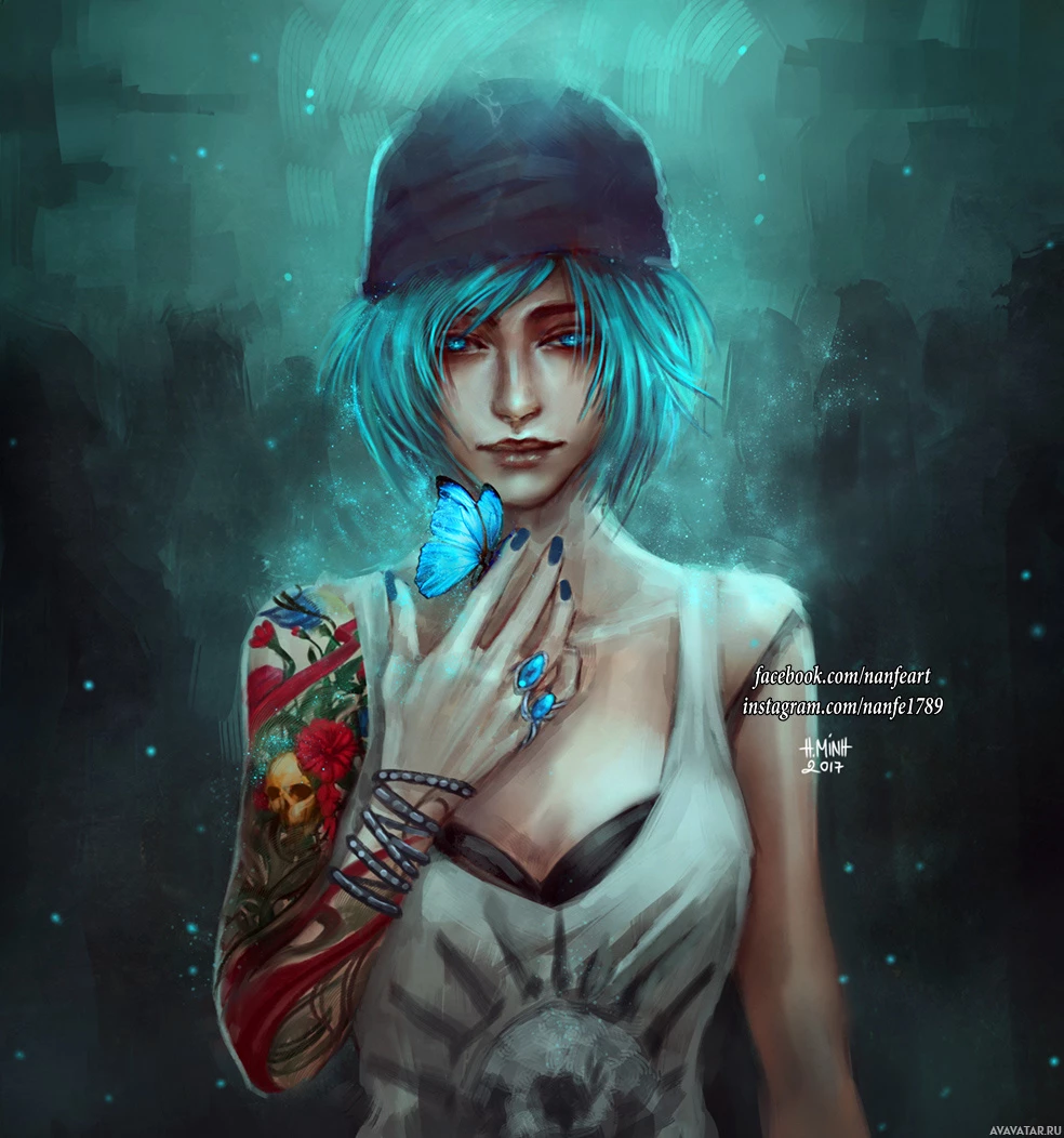 This image features a stylized character that appears to be inspired by Chloe Price from
