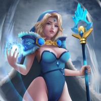the video game "Dota 2." She is a playable hero in the game, and her appearance in this artwork closely aligns with her in-