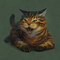 grey background. The artwork showcases the cat in a realistic yet stylized manner, typical of digital illustrations.
