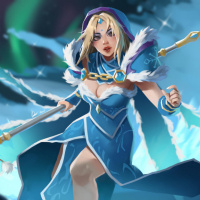 The image appears to be of a character from the video game Dota 2, known as Crystal Maiden. She is depicted with blonde hair and wearing blue armor adorned with ice crystals, which matches her ice-related abilities in the game.
