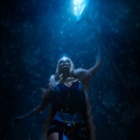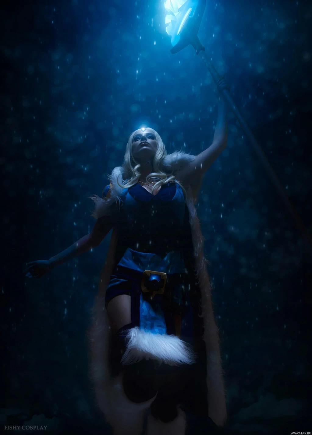 The image shows a person cosplaying as the character Crystal Maiden from