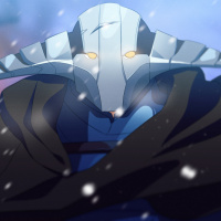 a snowy landscape at night, suggesting that this might be one of his heroic poses from the game.