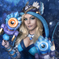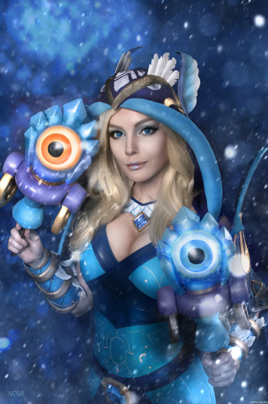 Dota 2's Crystal Maiden character. The costume features elements that are characteristic of