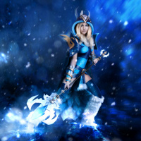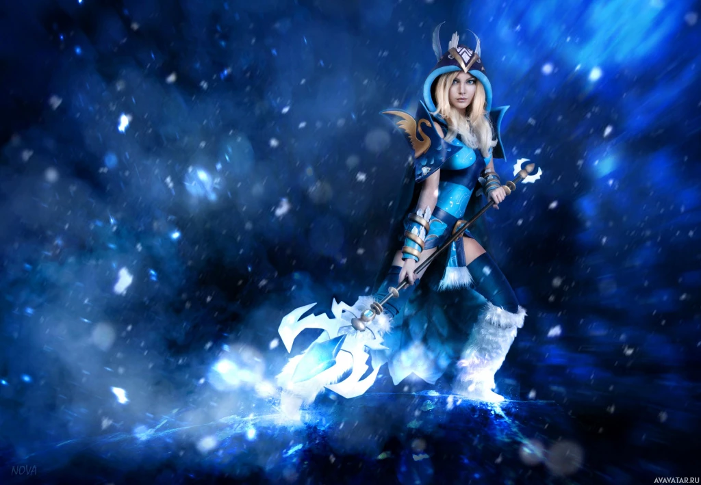 a fantasy character, specifically the Crystal Maiden from the game Dota 2. She is portrayed with