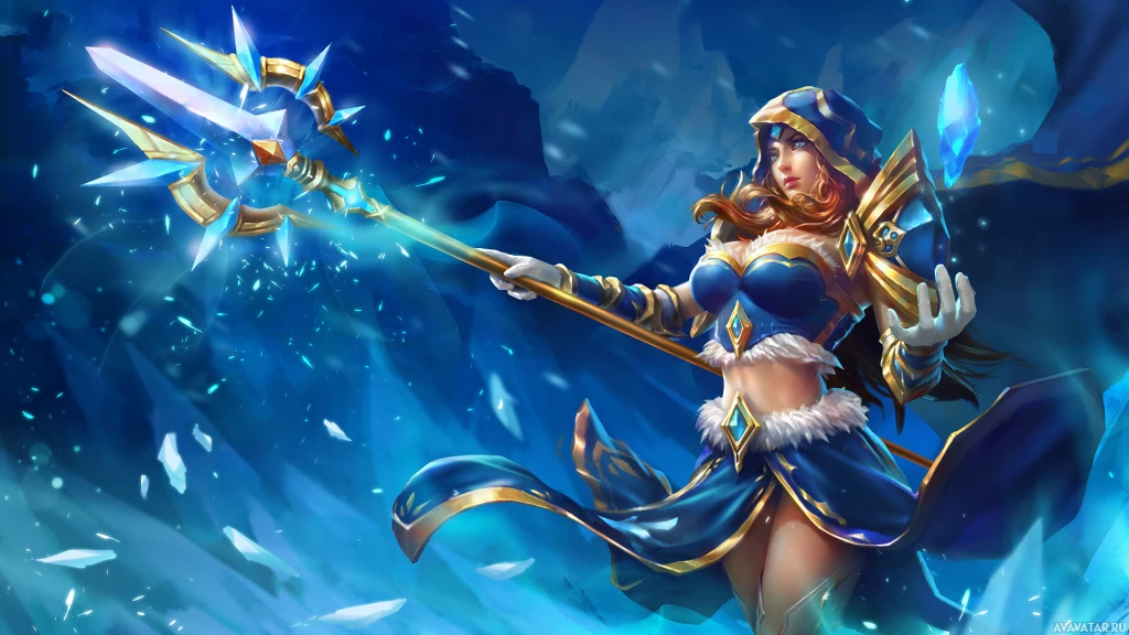 based hero, known for her abilities related to ice and crystals. In this particular artwork or promotional image, she is portrayed with dynamic posing and magical elements around her, emphasizing her fantasy and heroic status within