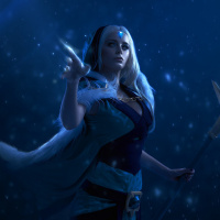 light effects, which suggests a magical or mystical setting, fitting for her character's abilities within Dota 2.