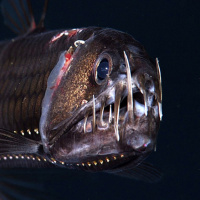 sharp teeth. Anglerfish are known for their characteristic illuminated lure or "fishing rod" that extends from their forehead, which they use to attract prey in the deep