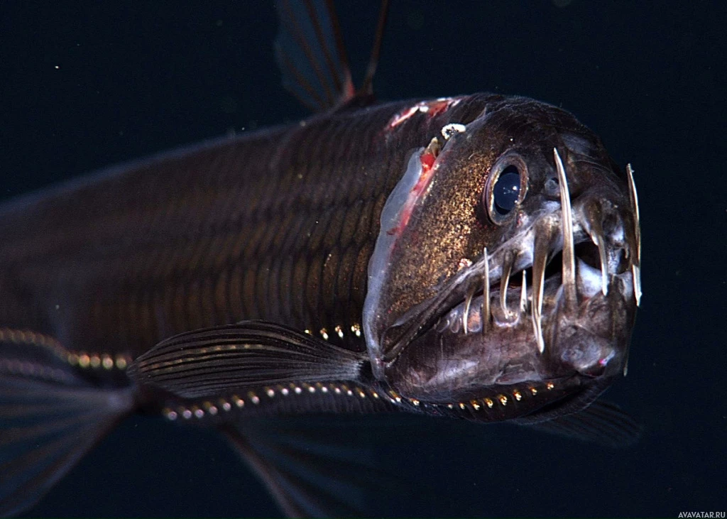 ocean waters where they reside. The fish is photographed underwater, likely at night given
