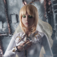 blonde hair and what appears to be a futuristic or fantasy-themed costume. The setting looks like a dystopian or