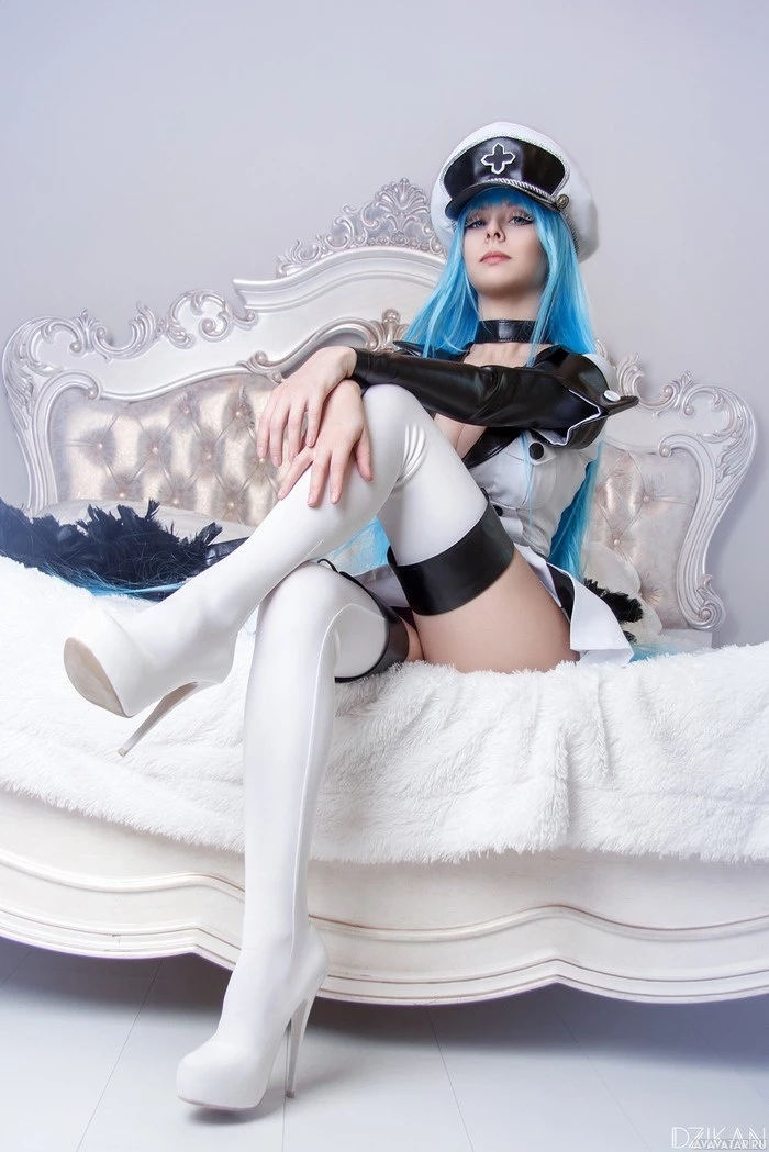 blue hair and are wearing a costume that appears to be inspired by an anime or manga character, possibly from the "Sailor Moon" series given the resemblance of the costume to one of the characters' outfits. The individual is seated on
