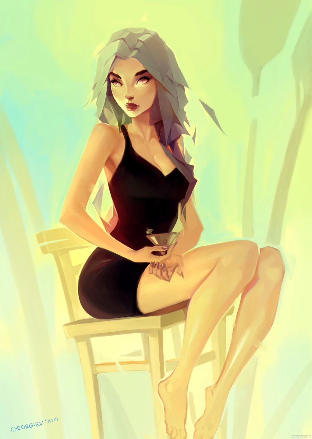 The image features a stylized illustration of a person sitting on a chair. This individual has short, light-colored hair and is wearing