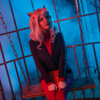 a cosplay outfit that resembles a character from the series "Devil May Cry." The costume includes
