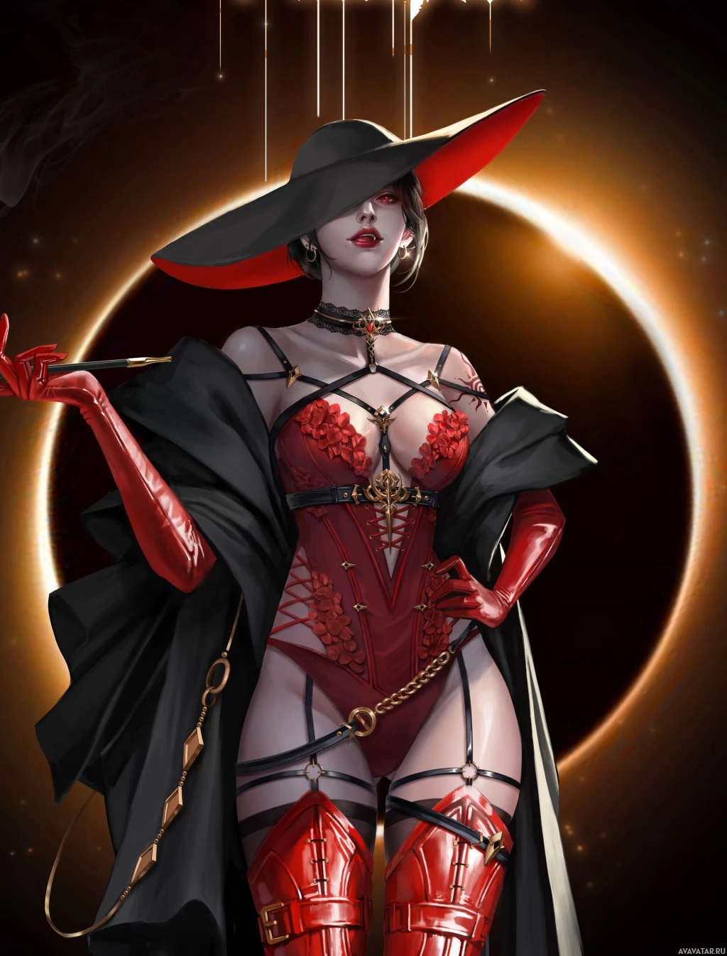 The image depicts an artistic rendition of a character named Dimitrescu, known for her appearance in