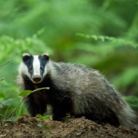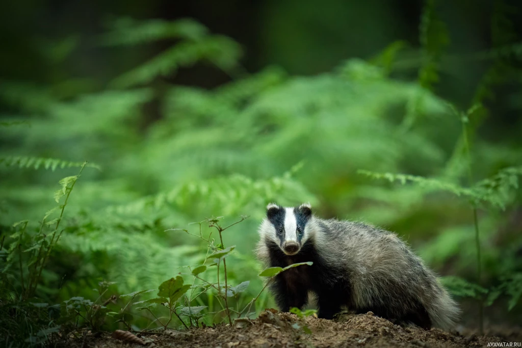 The image depicts a badger, which is an animal. Badgers are known for their distinctive black and white