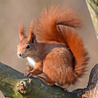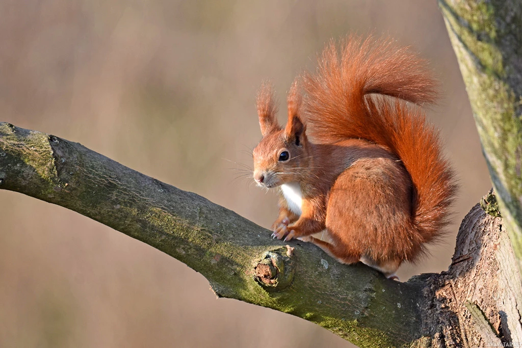 brown fur sitting on the branch of a tree. It appears to be in a natural