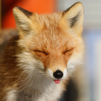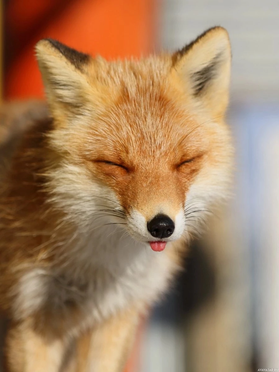 The image shows a fox with its eyes closed, appearing as if it's squinting or blinking. It appears to be in