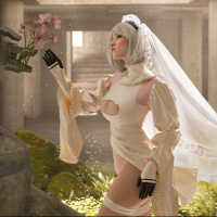 the video game "Nier: Automata." This character is wearing an elaborate white