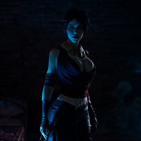 This image appears to be a cosplay of Morrigan from