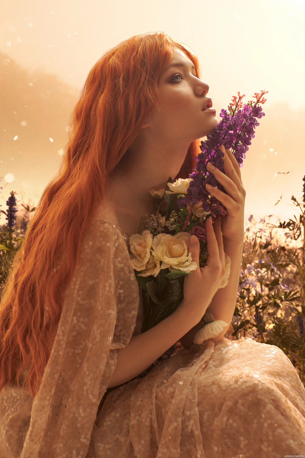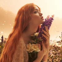 a contemplative pose, possibly posing for the photo as a character or model. They are wearing what seems to be a historical or fantasy-inspired costume, which adds to the ethereal and magical atmosphere suggested by the setting and attire.