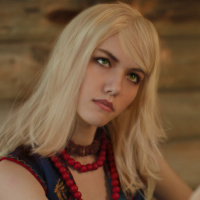 a female character dressed in fantasy or historical attire, reminiscent of the style seen in games like "The Witcher 3: Wild Hunt." This character has