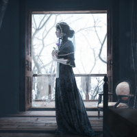 period attire which suggests that she might be a ghost from the past or a figure of historical significance related to the storyline of "The Witcher 3."