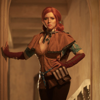 the video game "The Witcher" series. She is dressed in attire that resembles