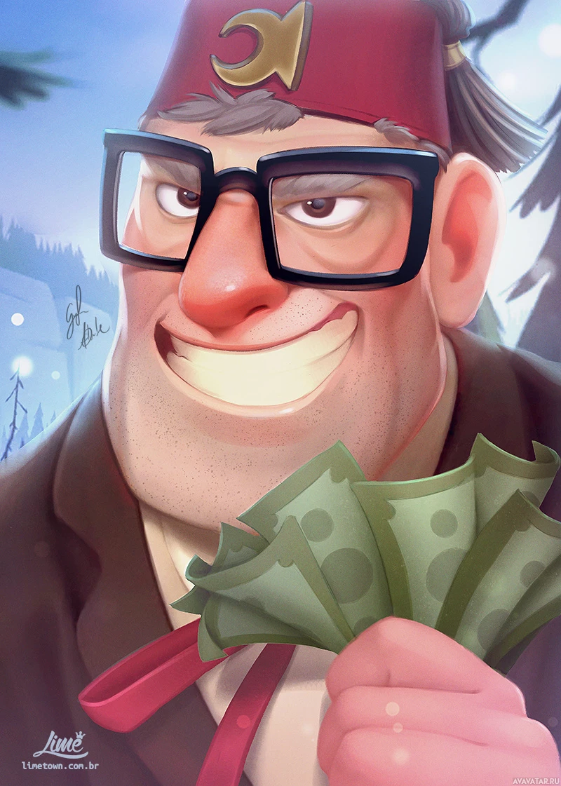 На картинке изображен анимированный персонаж, держащий в одной руке пачку денег, а из другой торчит язык. Этот персонаж известен появлением в сериале «Гравити Фоллс», который является анимационным телевизионным шоу, которое часто включает в себя причудливый юмор и различные сверхъестественные элементы. Преувеличенное выражение персонажа добавляет к комедийному стилю образа.