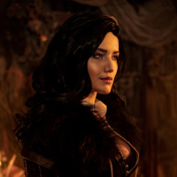 The image depicts a character that appears to be Yennefer from the "Witcher" series, portrayed by actress