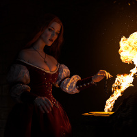 an atmospheric effect with the flame. The setting looks like it could be from a historical or fantasy-themed scene, possibly involving alchemy or witchcraft given the context of the elements in the image.